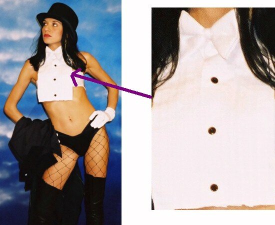Magdy's Zatanna Babe wears a white bow tie & white ruffled tux shirt like the comic, although it's hard to see.